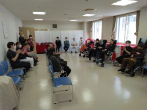 延期になっていた1階療育棟の長寿と七五三を祝う会をしました。喜寿3名、古希2名、5歳のお祝い1名でした。おめでとうございます。